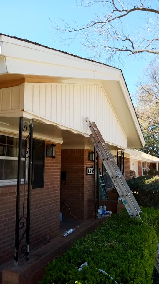 Fresh paint on soffits, fascia, and trim transforms this brick home's curb appeal. Clean lines and crisp white finish.