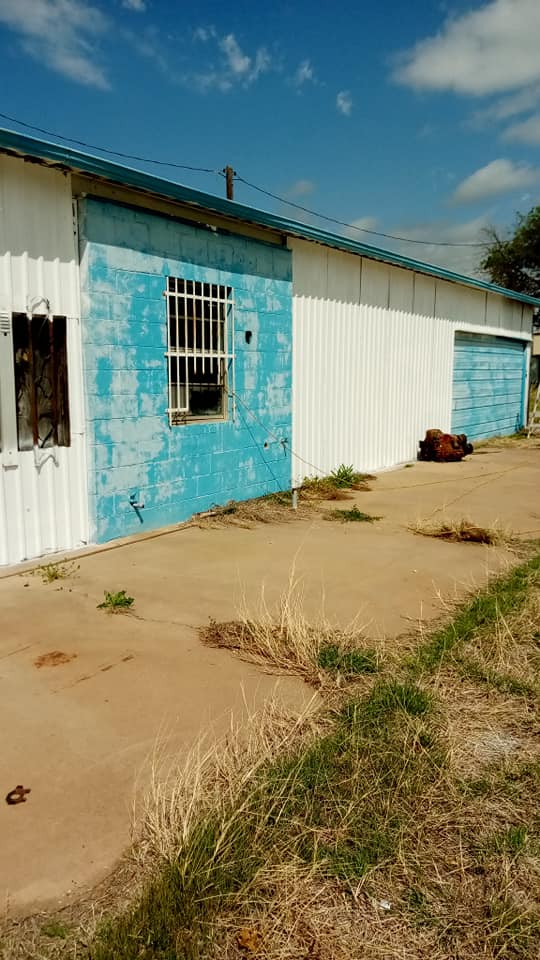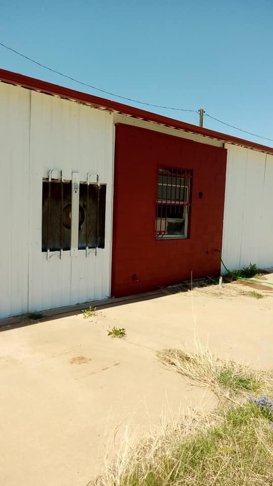 Complete exterior transformation from faded blue to bold, fresh red. This commercial property went from looking neglected to commanding attention.